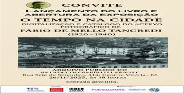 O Arquivo Público do Estado do Espírito Santo (Apees) abre suas portas para receber o público no lançamento do livro e na abertura da exposição O Tempo na Cidade: Digitalização e Catálogo do Acervo Fotográfico de Fábio de Mello Tancredi (1920–1940). O evento celebra o resultado de um amplo trabalho de organização da informação desenvolvido em parceria com a Ufes, que inclui digitalização, higienização, tratamento técnico e descrição arquivística de um conjunto de imagens que preserva parte da história urbana de Vitória no início do século XX.